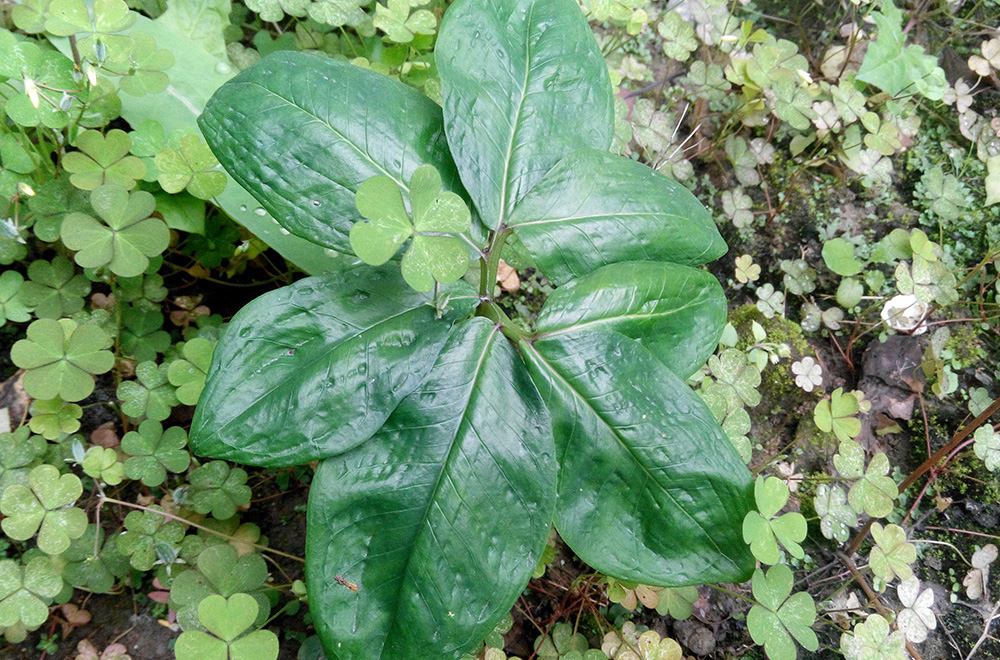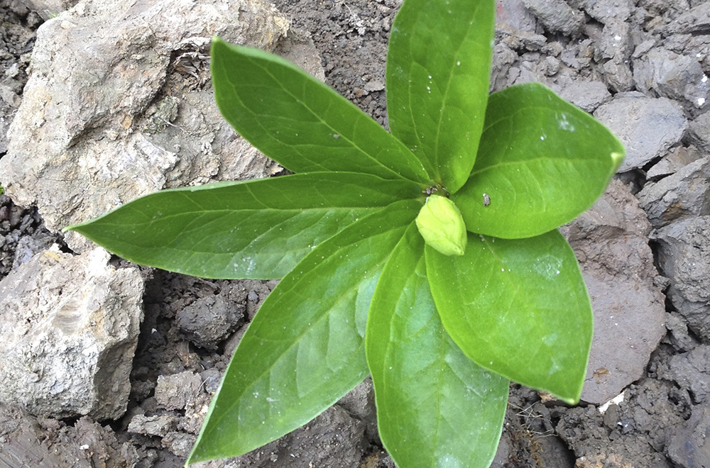 | 七叶一枝花喜温,喜湿、喜荫蔽,但也抗寒、耐旱,惧怕霜冻和阳光。年均气温13-18℃,有机质、腐殖质含量较高的砂土和壤土种植,尤以河边、箐边和背荫山种植为宜。 种子种植 1.直播:于5月中、下旬透雨后,在整好的墒面上以行距30-35cm,株距20-25cm打3-5cm深的小浅塘,130cm的窄墒打4行,150cm的宽墒打5行。播种前将种子冷浸24小时后,拌草木灰播种,每塘下种2-3粒,播后覆盖细粪、细土各半的肥土2-3cm,土干应及时浇水,7-10天萌发出苗。 2.育苗移栽:这是节省种子和争取节令的重要措施。于4月上旬在有水源的旱地或菜园地中选择苗床。翻挖土地前最好用40%五氯硝基苯,每平方米5-10g拌细土撒施,进行土壤消毒,然后反复翻挖表土层,把墒面整平整细后,在墒面上按15cm的行距开5cm左右深的播种沟,在沟中按株距5cm播种,然后覆土3cm,盖细粪2cm,浇透水并覆盖地膜,5-7天可出苗。育苗1月后,按直播规格把小苗移栽大田。 根茎种植 秋、冬季采挖健壮、无病虫害根茎置于阴凉干燥处砂贮,于翌年4月上、中旬取出,按有萌发能力的芽残茎、芽痕特征,切成小段,每段保证带1个芽痕,切好后适当晾干并拌草木灰,像播种一样条栽于苗床,并盖薄膜,15-20天生根长芽后,于5月中下旬,按直播规格移栽大田。 田间管理 1.间苗补苗:5月中、下旬对直播地进行间苗,同时查塘补缺。间苗前要先浇水,用木棍撬取苗,补苗时浇定根水,充分利用小苗,保证全苗和足够的密度。 2.中耕除草:重楼要求土壤疏松。地上部分长势较弱,要特别注意松土除草。5月下旬到6月上旬,暴雨多,土壤易板结,要及时排水、防涝,要勤中耕,浅松土,随时注意清除杂草。除草:苗齐或移植后,应及时除草松土,做到勤锄、浅锄,避免伤根,影响生长。平时畦面盖草保湿。 3.施肥:人工栽培七叶一枝花,所用基肥占总肥量的70-80%必须在移植前施入土中,后期的追肥量只能占总肥量的20%左右,在每年苗出土后追施人粪水1次,不用或少用化肥,禁用化学氮肥。 4.管水:七叶一枝花喜阴湿环境,畦面及土层要保持湿润,遇旱季要及时浇水,平时间隔喷水,雨季要及时疏沟排水,以防田间积水,诱发病害。 5.打花薹:为减少养分消耗,使养分集中供应地下块茎生长,在5-6月份出现花薹时,除留种外,应及时剪除全部花薹,以提高产量。 6.遮阴:重楼喜荫蔽、怕强光,全生育期均以透光度40%-50%为好。因此出苗、移栽后,就要采取遮荫措施。在有条件的地方,最好采用遮阳网;没有条件的地方,可采取插树枝遮荫的办法,还可视行间套种玉米等高秆作物遮荫,但要注意密度和间、套种方式。 7.培土:重楼通常有上面开花、下面块茎就膨大的生长规律,一般6月中、下旬到8月膨长最快。必须在6月上旬重施追肥,每亩用腐熟农家肥2,000-3,000kg,加普钙20-30kg,追于根部后结合清沟大培土,培上的土必须松散,保持墒面、沟底无积水。 |